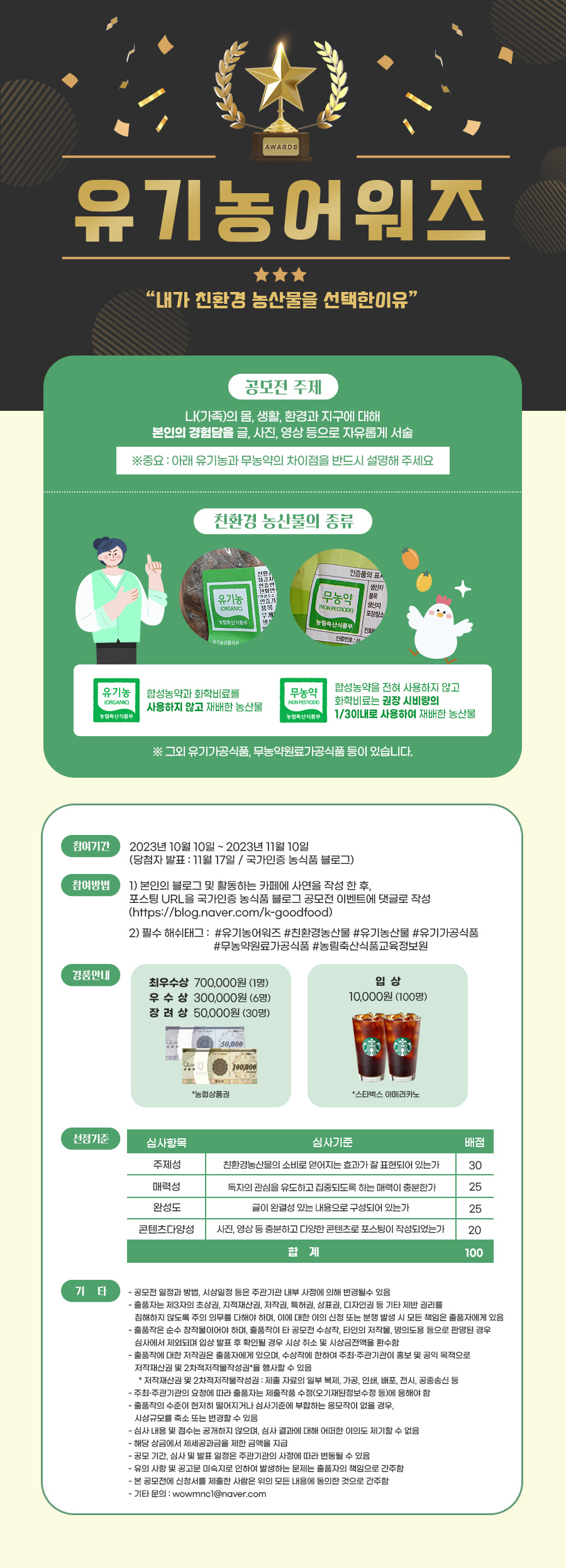 - 최우수상 700,000원 농협상품권 (1명)