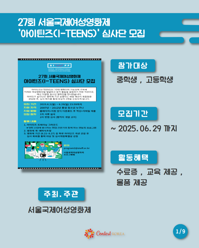 ✔ 27회 서울국제여성영화제 '아이틴즈(I-TEENS)' 심사단 모집