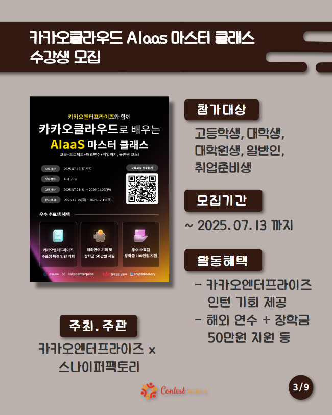 ✔ 카카오클라우드 AIaas 마스터 클래스 수강생 모집