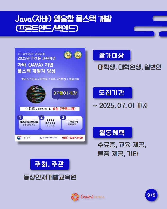 ✔ Java(자바) 웹융합 풀스택 개발(프론트엔드/백엔드)
