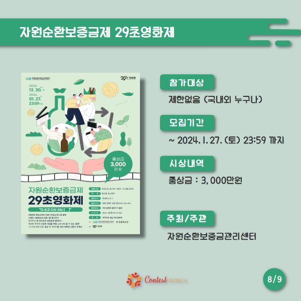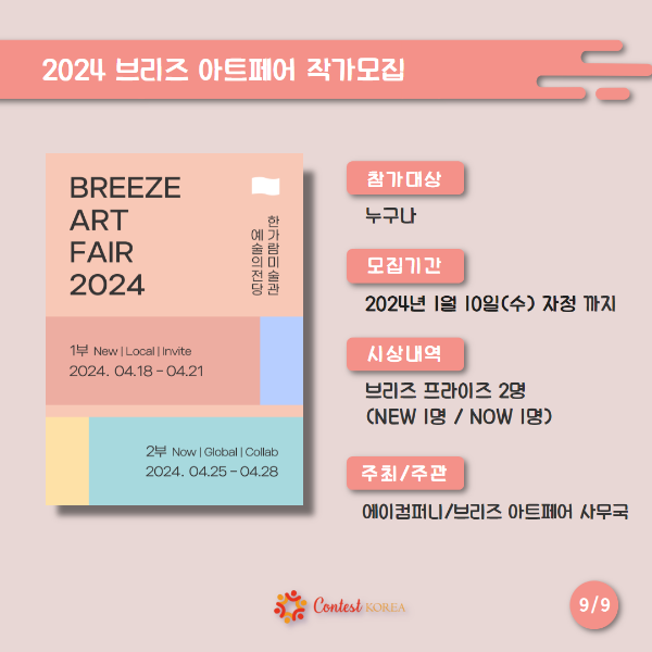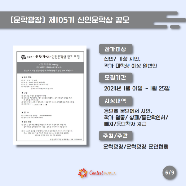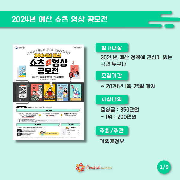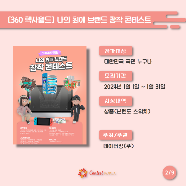 | [1월 1주차] 콘코 추천, 이주의 공모전 베스트9 (2) | 2024.01.05 |