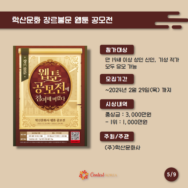 | [12월 3주차] 콘코 추천, 이주의 공모전 베스트9 (0) | 2023.12.15 |