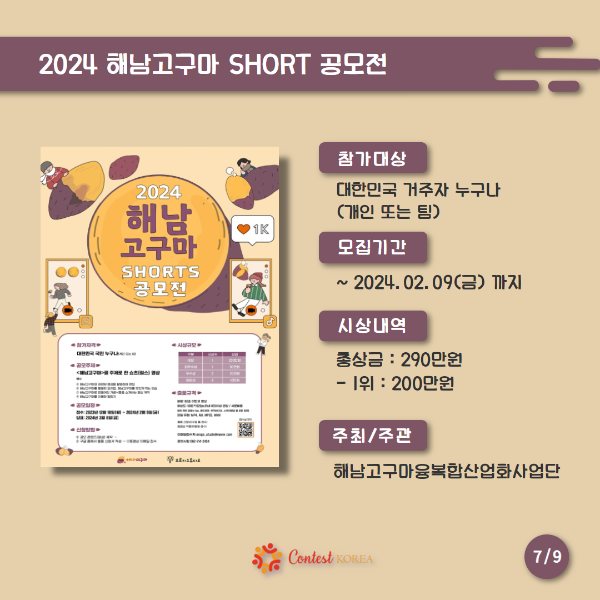 자세한 내용은 콘테스트코리아 홈페이지에서 확인하시면 도움이 됩니다~