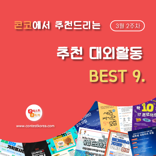 | [3월 3주차] 콘코 추천, 이번 주 대외활동 베스트9 (0) | 2024.03.16 |