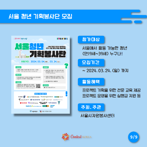 ✔ 기업 및 공공기관과 함께하는 서울 청년 기획봉사단 모집