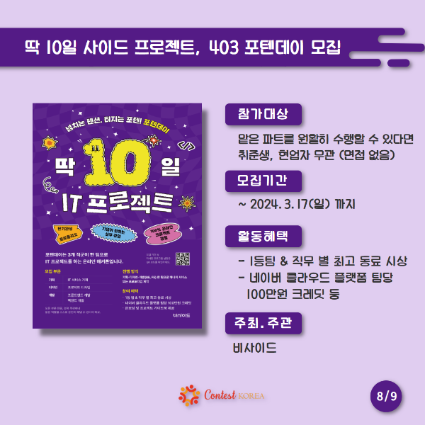 ✔ 온라인 해커톤] 딱 10일 사이드 프로젝트, 403 포텐데이 참여자 모집