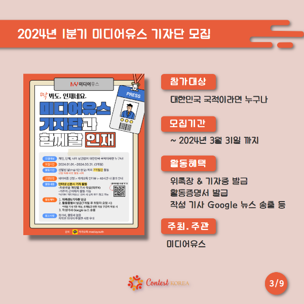 ✔ [미디어유스] 2024년 1분기 미디어유스 기자단 모집