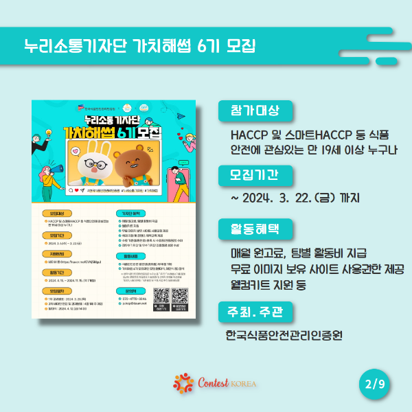 ✔ 한국식품안전관리인증원 누리소통기자단 가치해썹 6기 모집