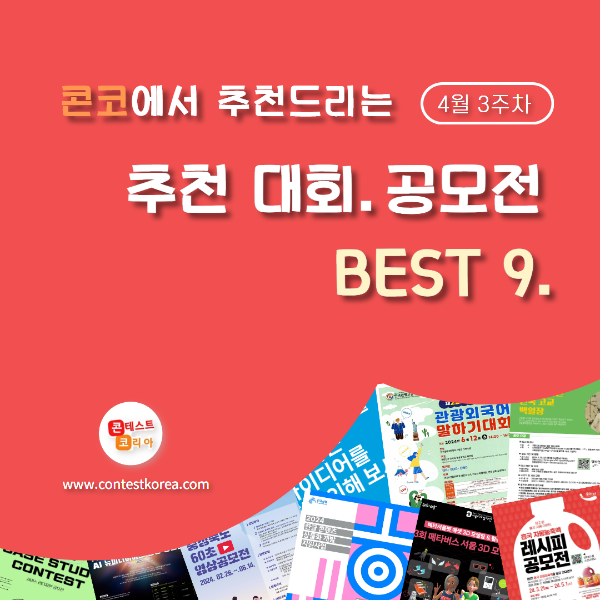 | [4월 2주차] 콘코 추천, 이주의 공모전 베스트9 (0) | 2024.04.13 |