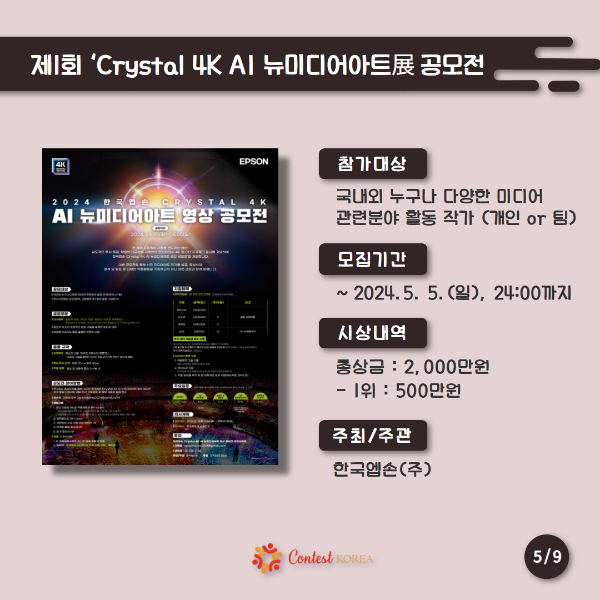 ✔ 2024 제1회 한국엡손 ‘Crystal 4K AI 뉴미디어아트展 공모전