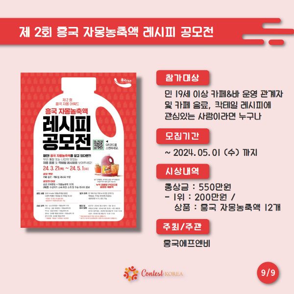 | [3월 5주차] 콘코 추천, 이주의 공모전 베스트9 (0) | 2024.03.30 |