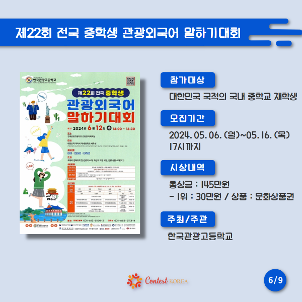 ✔ 제22회 전국 중학생 관광외국어 말하기대회