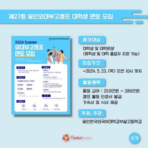 ✔ 제27회 용인외대부고캠프(HAFS CAMP) 대학생 멘토 모집