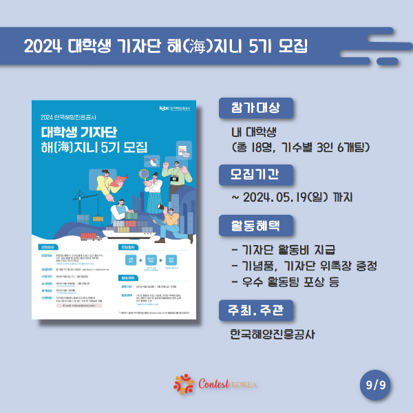 ✔ 2024 한국해양진흥공사 대학생 기자단 해(海)지니 5기 모집